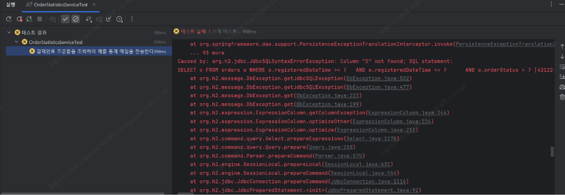 테스트를 실행했을 때 발생한 오류는 다음과 같습니다: