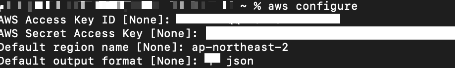 - AWS CLI에서 aws configure를 실행하여 IAM 사용자 정보를 설정