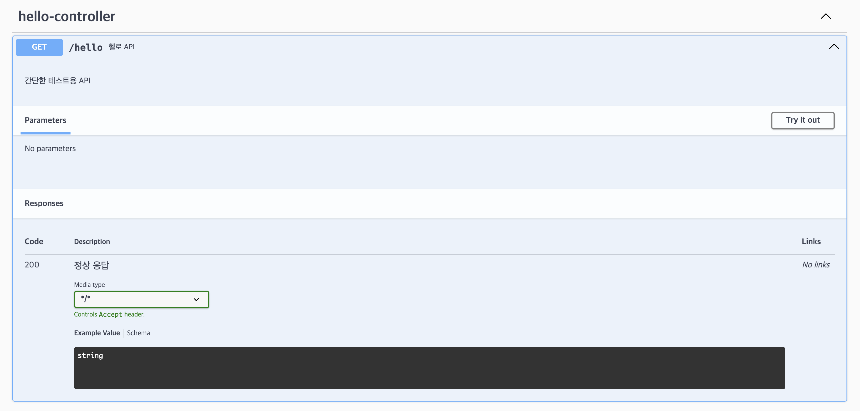 @Operation(summary = "헬로 API", description = "간단한 테스트용 API")